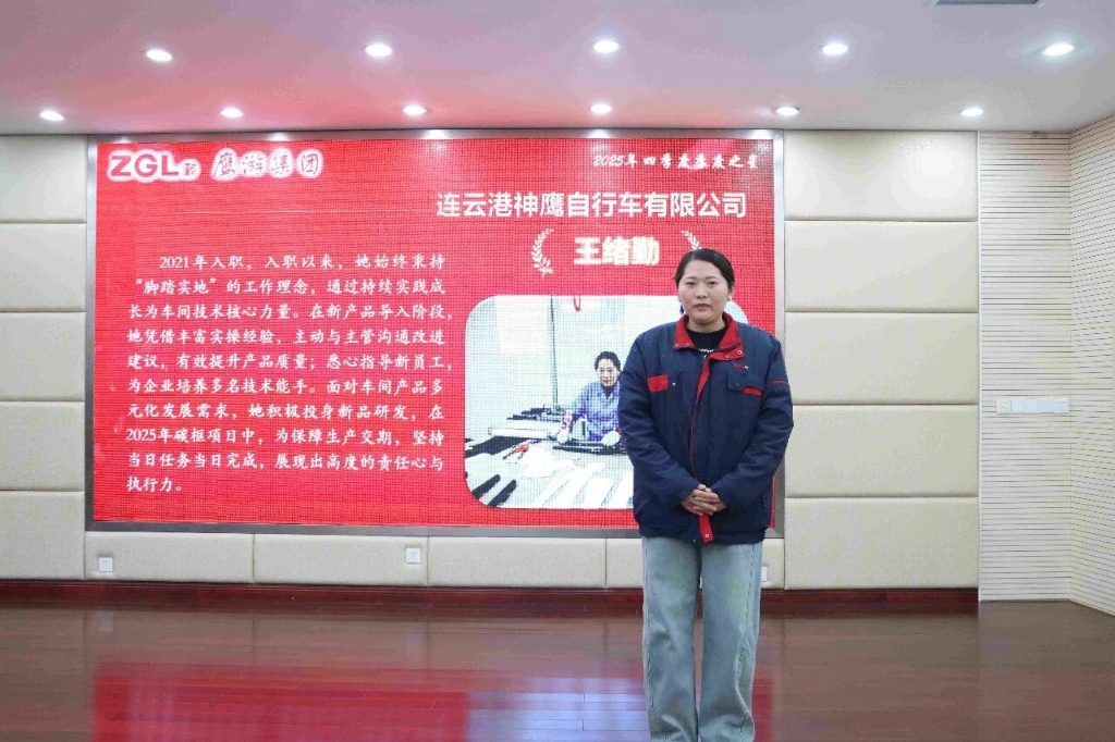 王绪勤,2021年入职神鹰碳纤维自行车公司,卷料车间操作骨干,多次获评优秀员工,2025年成为中共预备党员。她秉持 “脚踏实地” 的工作理念,在实践中成长为车间技术核心。新品导入阶段,她主动建言献策提升产品质量;注重团队协作,悉心指导新员工,培养多名技术能手。2025年碳纤维复合材料制品项目中,她为保障生产交期,坚持当日任务当日完成,以高度的责任心与执行力彰显担当。