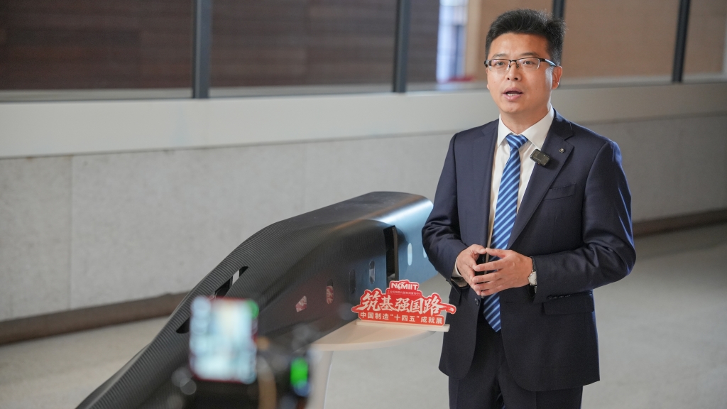 本次成就展以“筑基强国路”为主题,以全面展示“十四五”制造业标志性成果、汇聚新型工业化合力为核心使命,聚焦关键技术突破、产业结构升级、绿色低碳转型三大主线,是我国制造业发展成就的集中亮相,更是彰显制造强国建设成效的坚实步伐。连峰在接受媒体采访时,向记者展示了碳纤维在新一代高铁中的应用。他介绍道,“十四五”期间,中复神鹰实现了高性能碳纤维核心技术从跟跑、并跑到局部领跑的历史性跨越,并建成了全球首个万吨规模的绿色化碳纤维产业基地,有效助力碳纤维的国产化率由“十三五”末的不足40%提升到“十四五”末的85%以上。碳纤维应用场景不断拓宽,不仅实现了在航空航天、新能源等工业领域广泛应用,也在生命健康等消费品领域崭露头角。